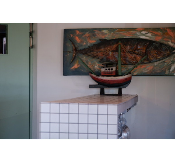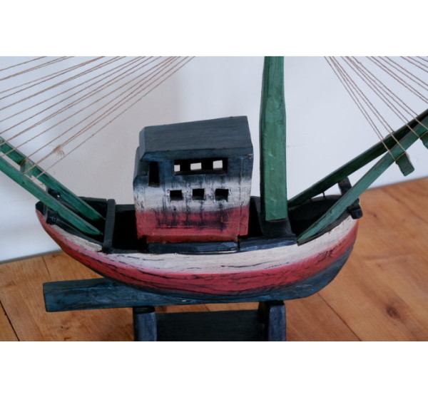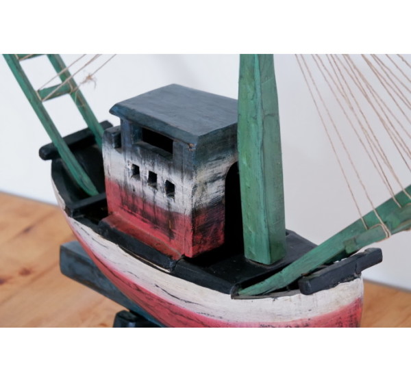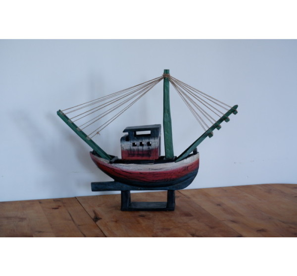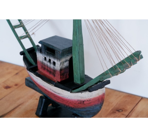 Wooden hand-carved and painted boat home decor item measuring 640mm x 500mm. This item is perfect for a beach home.